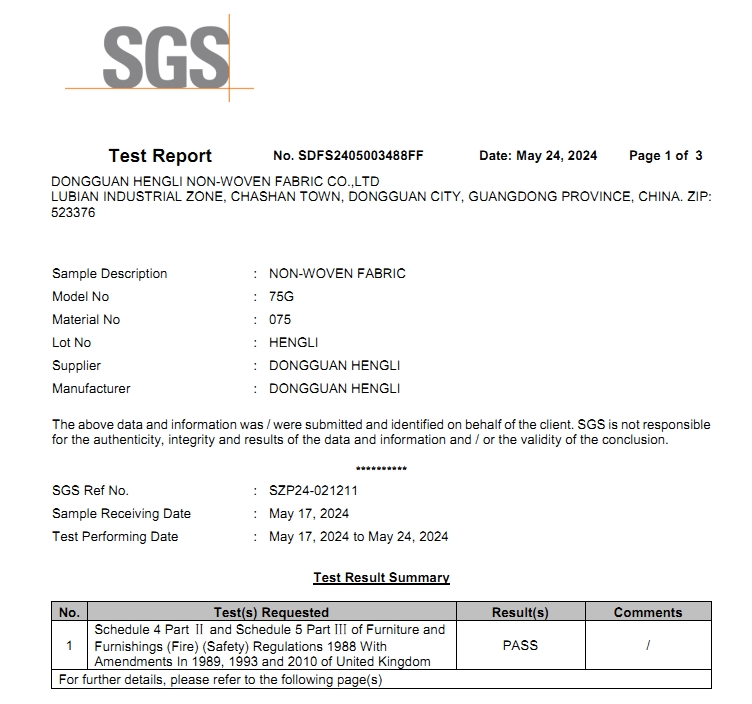 - 2024年最新版SGS無紡布英標防火報告 測試評估方法是通過悶燒和直接明火接觸家紡織物。 ...